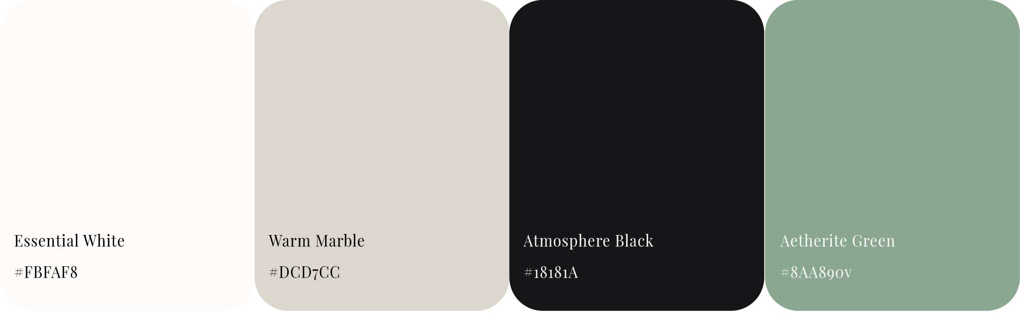 Color - A muted, mineral-inspired palette was developed to support product photography and material texture rather than compete with it. Color functions structurally, not decoratively.