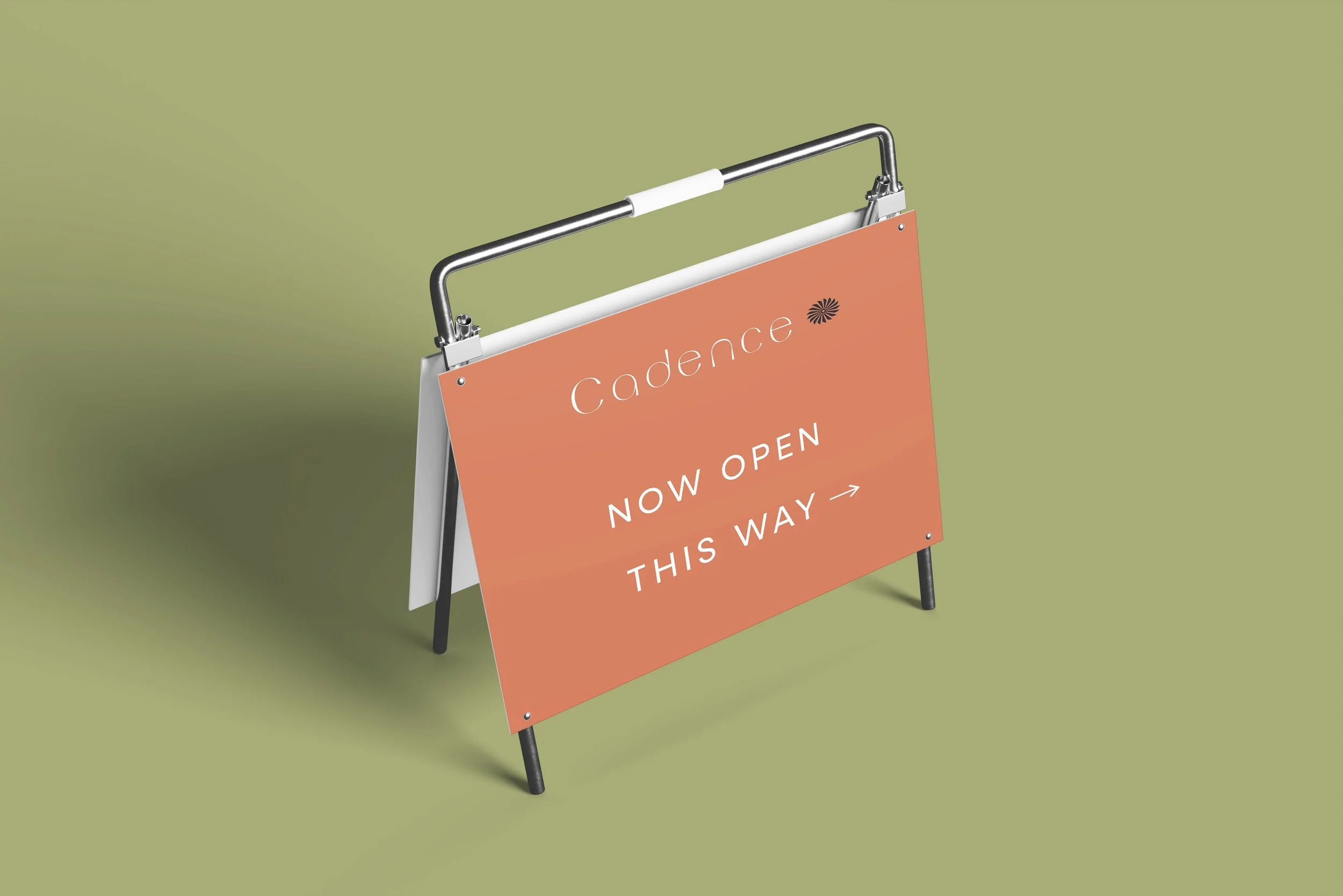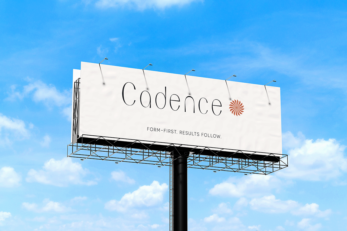 The single-word identity—"Cadence"—paired with the radial icon establishes complete brand clarity without categorical labels. Like Equinox or Aman, the name stands alone, allowing location and context to establish offering. This restraint signals confidence: the brand doesn't need to explain itself to its audience. Practitioners seeking precision-led Pilates will recognize what Cadence represents, while the unmarked identity maintains flexibility for future programming or expansion.