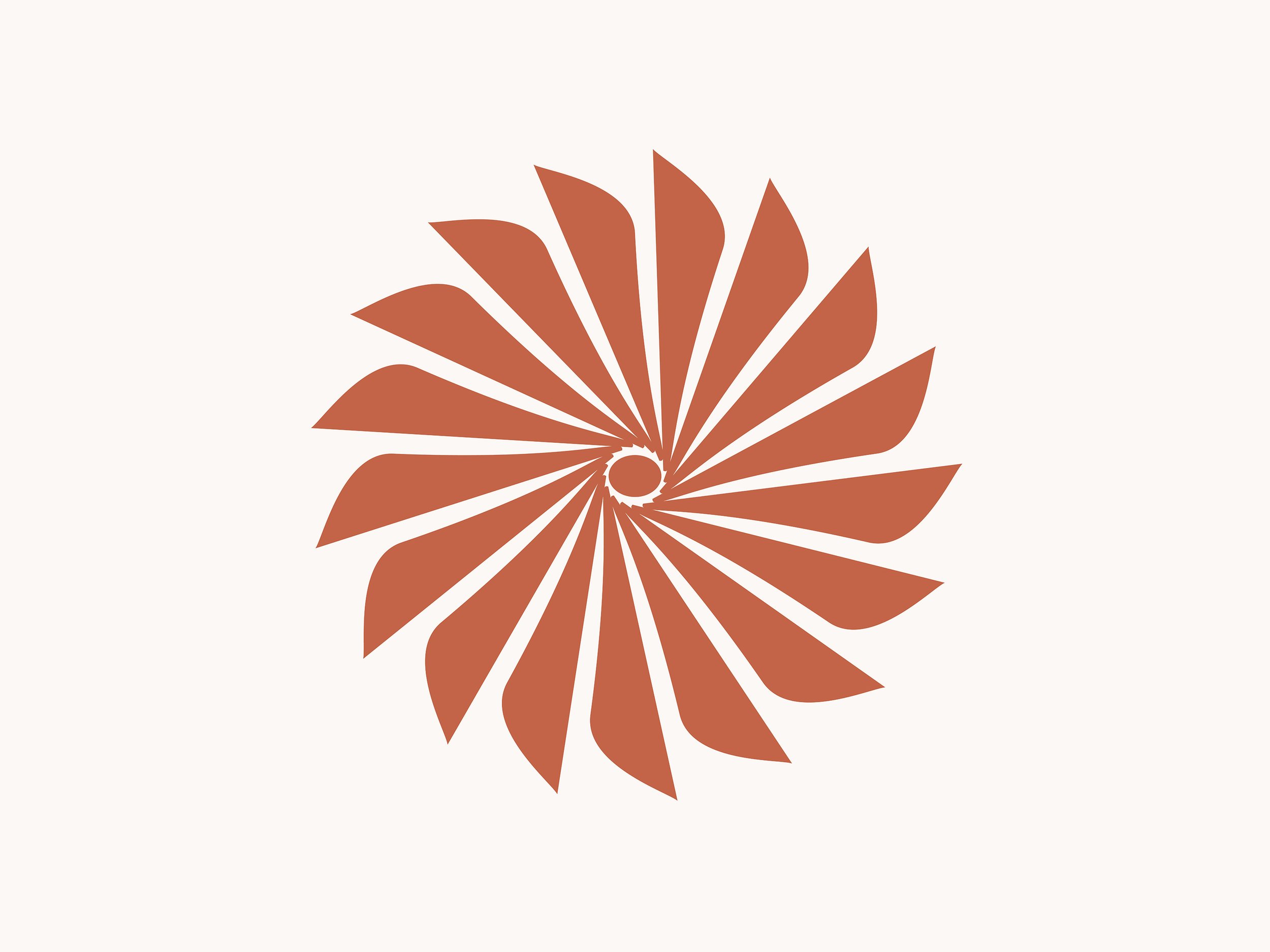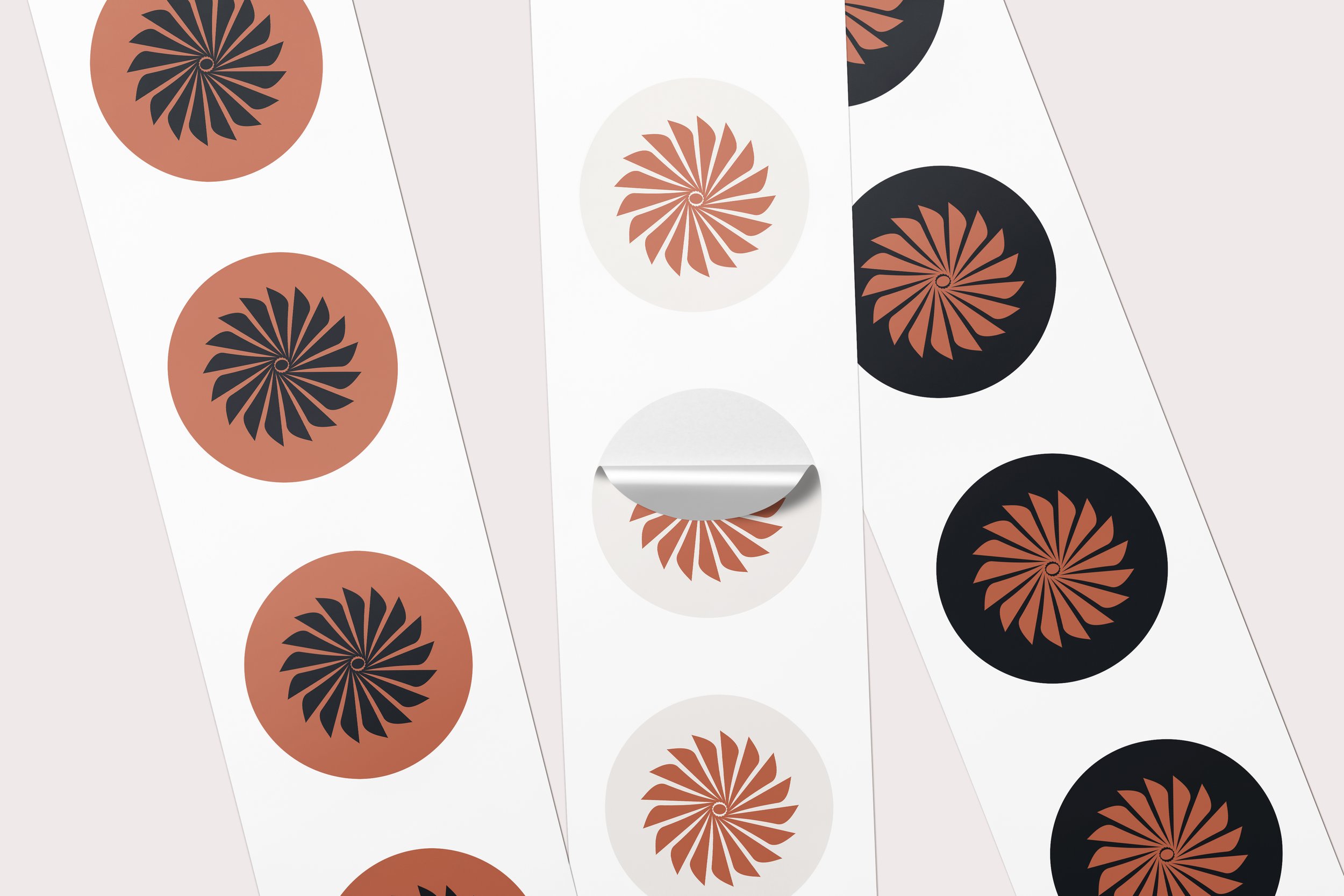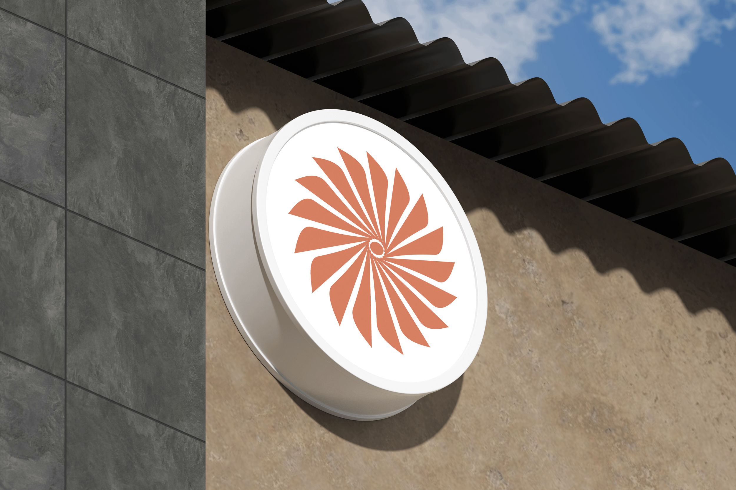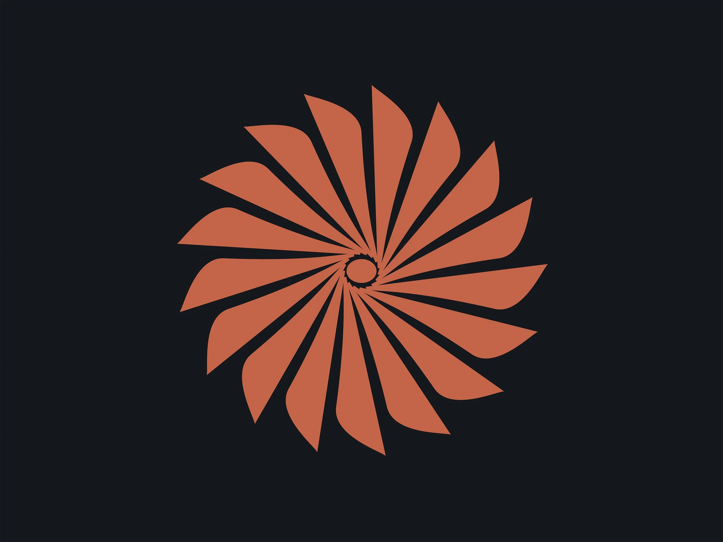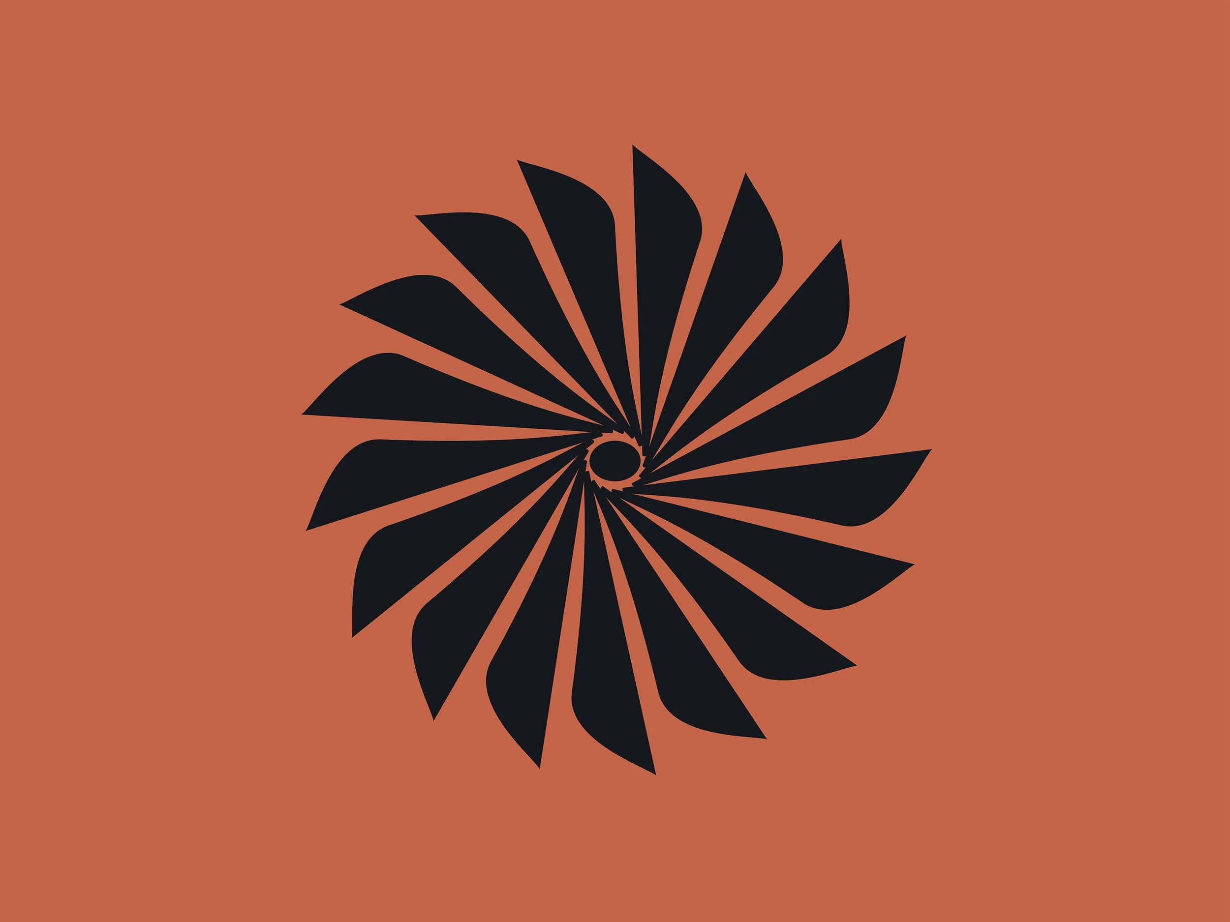 A radial starburst icon represents the core concept: rhythmic repetition, disciplined rotation, measured cadence. The geometric construction conveys precision while the circular motion suggests sustainable practice. The mark scales effectively from large-format signage to small applications, maintaining its distinctive character across all touchpoints.